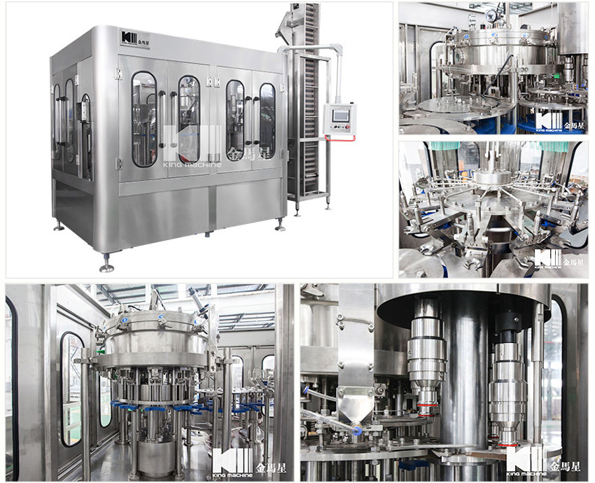 此設(shè)備主要應(yīng)用于灌裝飲料,包含沖瓶、灌裝和旋蓋三大功能。