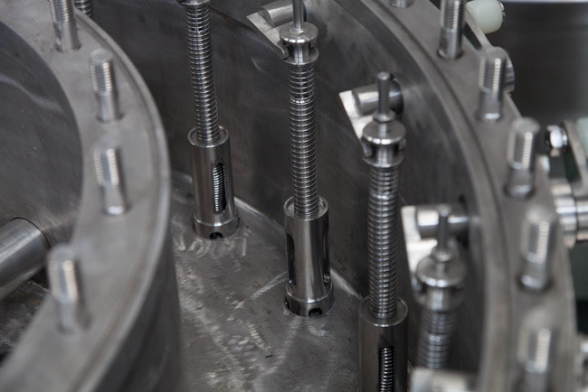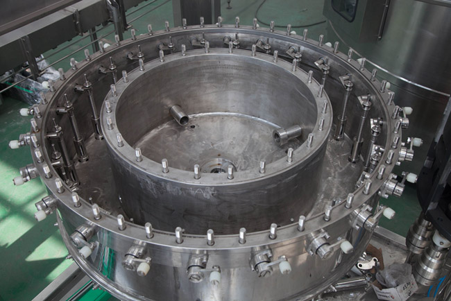此設(shè)備主要應(yīng)用于灌裝飲料,包含沖瓶、灌裝和旋蓋三大功能。