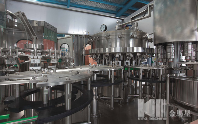 本設(shè)備主要用于含汽飲料灌裝,包含沖瓶灌裝和旋蓋三大主要功能。本設(shè)備實(shí)現(xiàn)全自動(dòng)運(yùn)行,能夠適應(yīng)PET瓶含汽果汁、含汽礦泉水及可樂(lè)與雪碧等灌裝。瓶型適應(yīng)性強(qiáng),更換瓶型時(shí)操作簡(jiǎn)單快捷。灌裝方案中采用了等壓灌裝原理,灌裝快速穩(wěn)定,液位準(zhǔn)確,含汽量足。與同類設(shè)備相比,本公司產(chǎn)品產(chǎn)量高,運(yùn)行穩(wěn)定安全,故障率低,自動(dòng)化長(zhǎng)度高,價(jià)格經(jīng)濟(jì)實(shí)惠。全機(jī)采用優(yōu)良可編程控制器(PLC)來(lái)控制設(shè)備的自動(dòng)運(yùn)行,送瓶系統(tǒng)由變頻器改變速度,更加穩(wěn)定可靠。每個(gè)部分都有光電單元進(jìn)行監(jiān)測(cè),所以更加自動(dòng)化,操作更加便捷。在此基礎(chǔ)上,更換灌裝單元即可改變灌裝模式到低壓真空灌裝和等壓灌裝等。本設(shè)備是飲料企業(yè)的選擇。