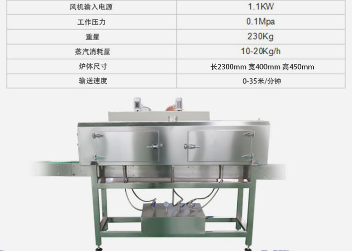 新型的熱蒸汽收縮機(jī)能夠應(yīng)對(duì)不同瓶型進(jìn)行平順收縮。低壓蒸汽鼓的分布和蒸汽噴射的路線都通過(guò)無(wú)縫管,是一致的。噴嘴被分成三段,并且每一段的高度位置和蒸汽輸出可以進(jìn)行調(diào)節(jié),以達(dá)到良好的收縮效果。整臺(tái)機(jī)器由不銹鋼制成,所包含的保溫層不僅節(jié)約了能量,也遵守了國(guó)際安全標(biāo)準(zhǔn)。不銹鋼接水盤(pán)負(fù)責(zé)收集冷凝水。整機(jī)采用防水設(shè)計(jì),操作便捷簡(jiǎn)單,保養(yǎng)費(fèi)用較低。在原有結(jié)構(gòu)上,增加雙層保溫爐,更加節(jié)能。