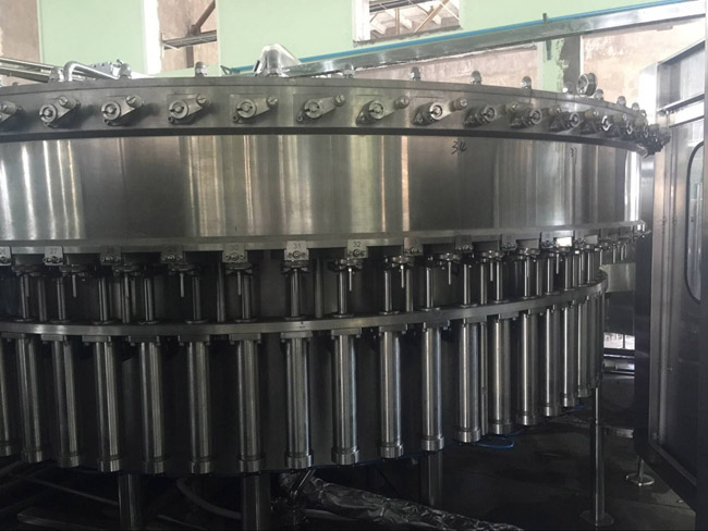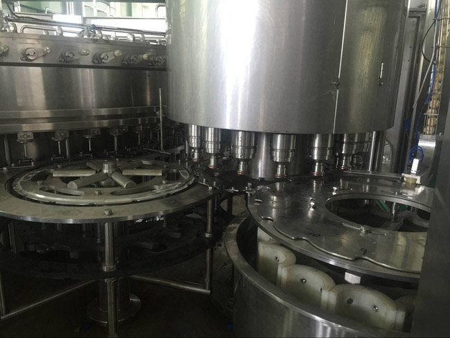 飲用水灌裝機(jī)集沖洗、灌裝、旋蓋于一體,全過程自動化運(yùn)行,主要適用礦泉水、純凈水等不含氣飲料的沖瓶、灌裝、封口連續(xù)作業(yè)。本機(jī)大部分電器系統(tǒng)零件均采用國外優(yōu)良產(chǎn)品,所有與液料接觸的地方均采用優(yōu)質(zhì)的不銹鋼材料制作,主關(guān)鍵部件采用數(shù)控機(jī)床精密加工, 整機(jī)光電檢測各部件的運(yùn)行狀況,無瓶不灌裝,無瓶不送蓋,自動化程度高,操作簡易,具有耐磨、穩(wěn)定、故障率低等特點(diǎn),產(chǎn)品質(zhì)量處于行業(yè)前列,是新老飲料投資者的選擇。