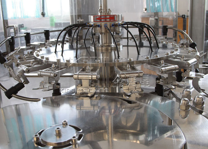 飲用水灌裝機(jī)集沖洗、灌裝、旋蓋于一體,全過(guò)程自動(dòng)化運(yùn)行,主要適用礦泉水、純凈水等不含氣飲料的沖瓶、灌裝、封口連續(xù)作業(yè)。本機(jī)大部分電器系統(tǒng)零件均采用國(guó)外優(yōu)良產(chǎn)品,所有與液料接觸的地方均采用優(yōu)質(zhì)的不銹鋼材料制作,主關(guān)鍵部件采用數(shù)控機(jī)床精密加工, 整機(jī)光電檢測(cè)各部件的運(yùn)行狀況,無(wú)瓶不灌裝,無(wú)瓶不送蓋,自動(dòng)化程度高,操作簡(jiǎn)易,具有耐磨、穩(wěn)定、故障率低等特點(diǎn),產(chǎn)品質(zhì)量處于行業(yè)前列,是新老飲料投資者的選擇。