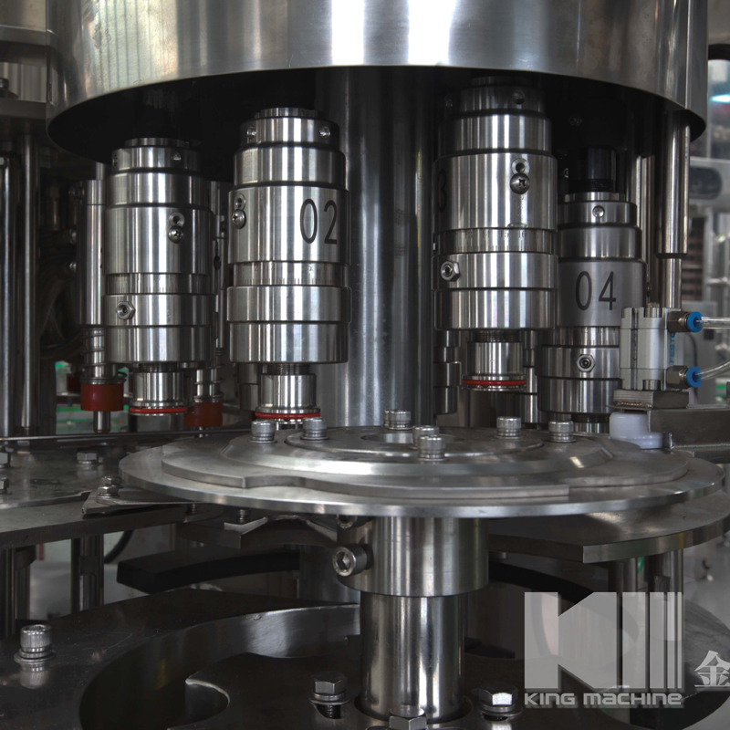 此設(shè)備主要應(yīng)用于灌裝飲料,包含沖瓶、灌裝和旋蓋三大功能。