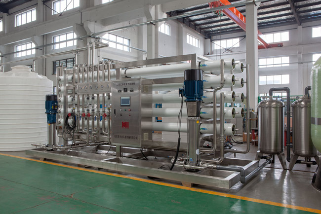 電除鹽實際上就是在電滲析的陰、陽離子膜隔室的脫鹽室中加入樹脂,作為脫鹽隔室。在膜堆兩端加直流電產(chǎn)生電位差,它使原水中的陽離子向陰極方向移動并穿過陽膜,使陰離子向陽極方向移動并穿過陰膜,從而使陰、陽離子進入濃縮室隨濃水排走。隨著脫鹽室水電阻率的升高,在近膜層發(fā)生極化,水被電離分解成H+和OH-,脫鹽室內(nèi)的樹脂經(jīng)常處于再生狀態(tài),實現(xiàn)連續(xù)深度脫鹽填充的離子交換樹脂是一種特制高導電率的樹脂,其導電能力要比低濃度水電導率大得多。樹脂顆粒不斷發(fā)生離子交換作用而構(gòu)成離子通道,使脫鹽室內(nèi)電導率增大,從而減弱電滲析器的極化現(xiàn)象,提高了電滲析器的極限電流,亦即提高了脫鹽能力。由于脫鹽隔室添加了樹脂使水流攪拌作用增大,促進了離子擴散,使脫鹽室電導率增大,提高了極限電流密度和電流效率,有助于深度脫鹽。當EDI設(shè)備的運行電流超過極限電流時,在膜和樹脂附近的界面層會產(chǎn)生極化,水解產(chǎn)生OH-和H+,它可使樹脂再生。EDI設(shè)備在運行中,水中的鹽分通過電滲析過程脫鹽和通過陰、陽樹脂交換脫鹽,還會因樹脂再生使水質(zhì)變壞,經(jīng)過調(diào)試選擇適當條件就能產(chǎn)生高質(zhì)量的純水。